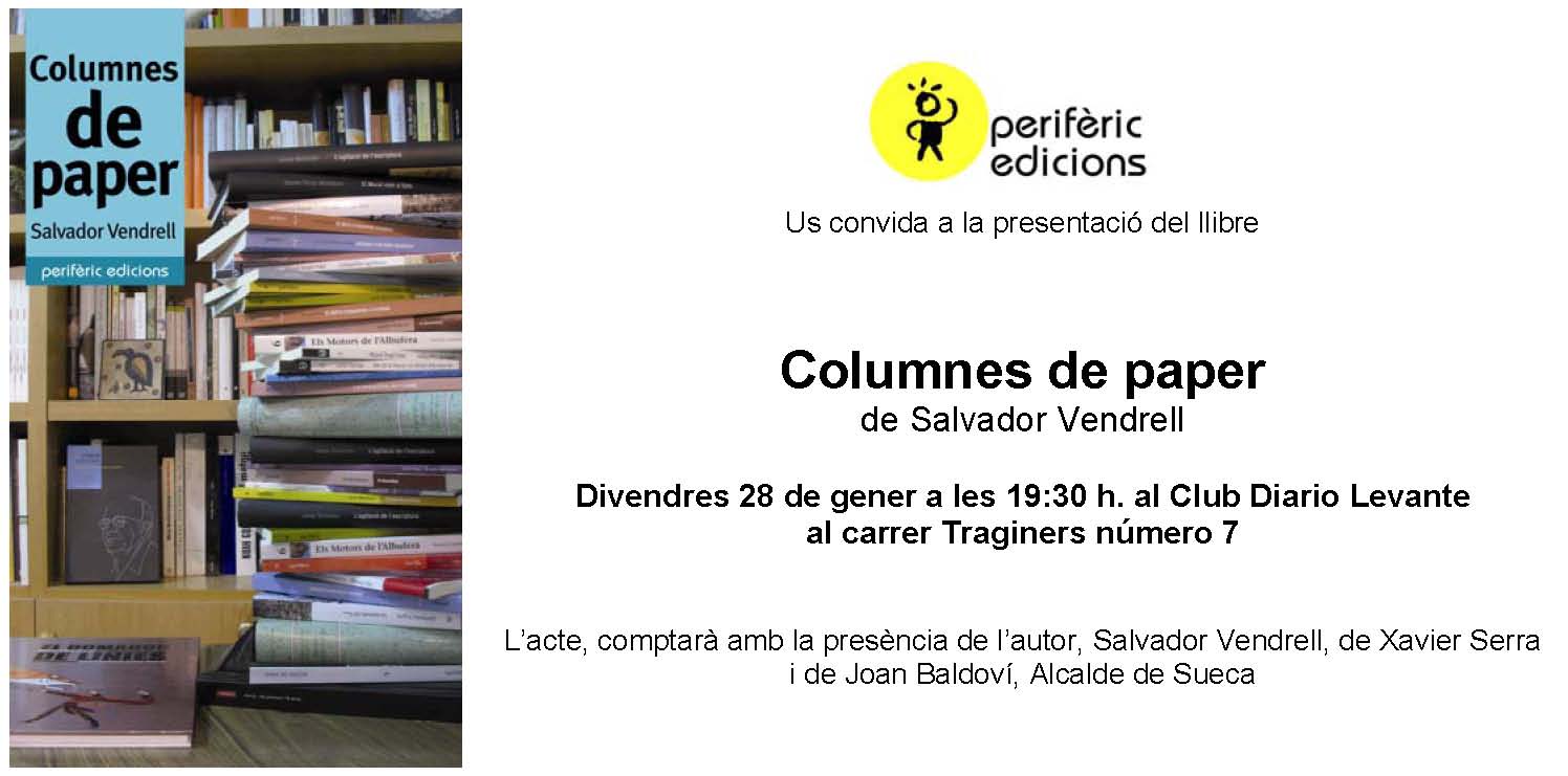 L’acte, comptarà amb la presència de l’autor, Salvador Vendrell, de Xavier Serra i de Joan Baldoví, Alcalde de Sueca